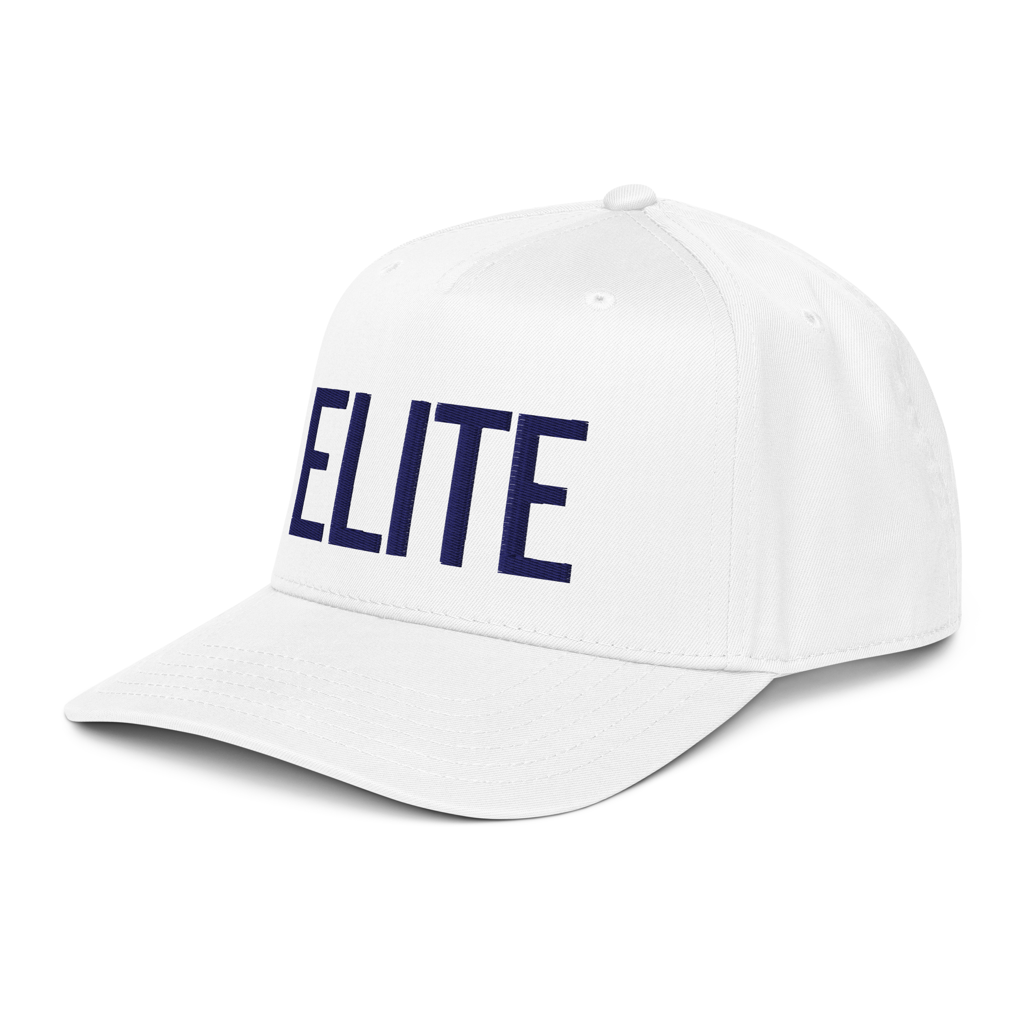 ELITE Baseball Hat - White Snapback Cap with Navy Embroidery Pickleball, Golf, Tennis, Gifts